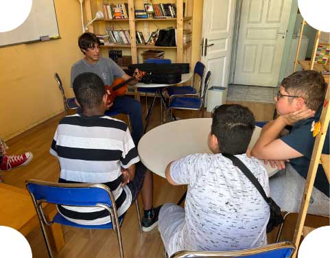 Under the thoughtful guidance of Ms. Monika Pouskouri, our students actively contribute by offering lessons in English, Math, Physics, Chemistry, Modern Greek, Violin, and Basketball — using education as a bridge to inclusion and empowerment.